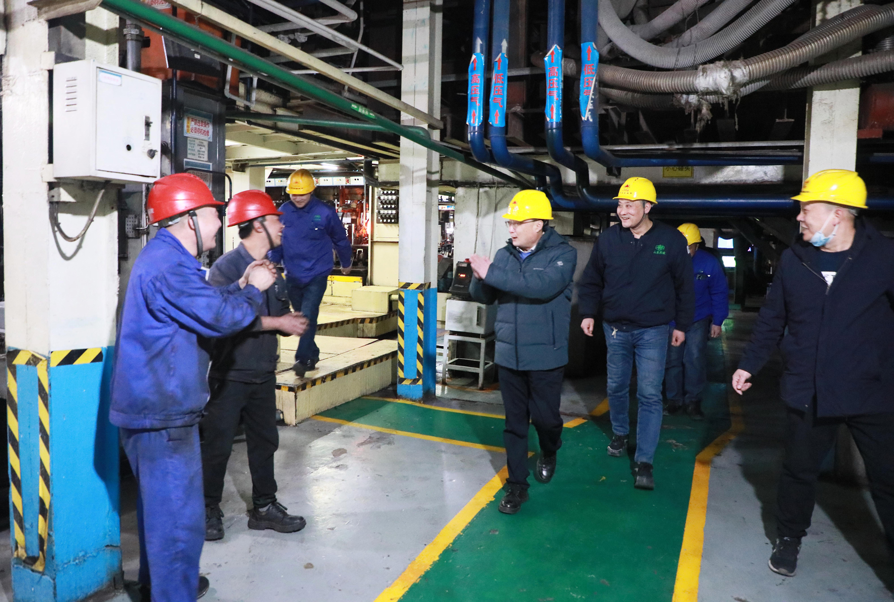 沂源縣委副書記、縣長(zhǎng)張濤(右一)一行,來(lái)我公司看望、慰問節(jié)日期間堅(jiān)持在生產(chǎn)